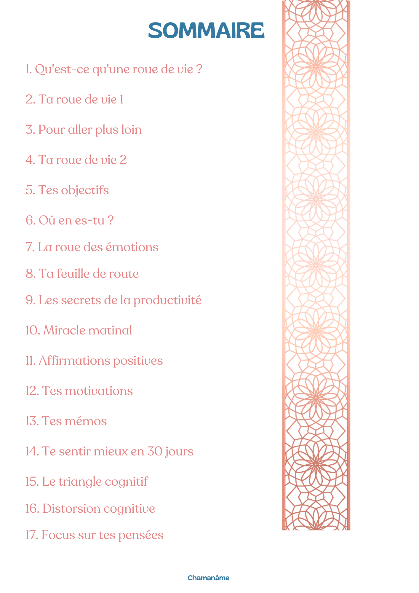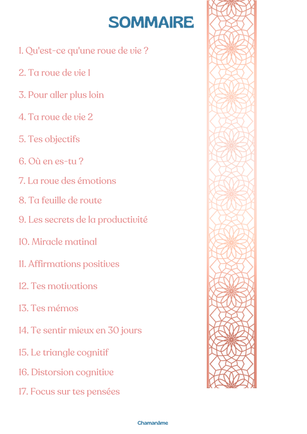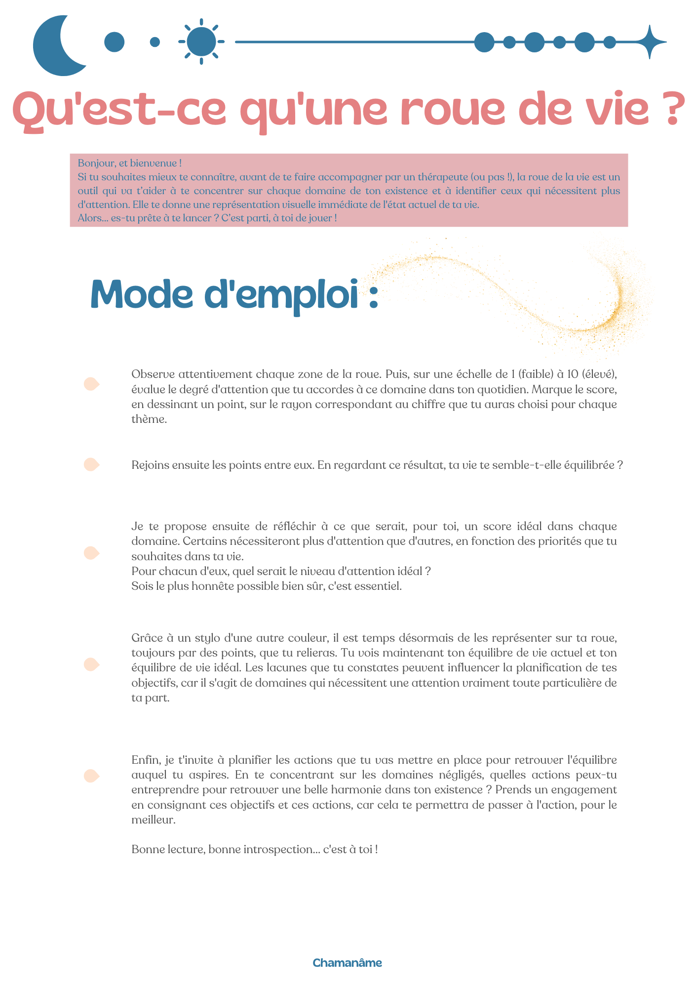 Grâce à des roues de la vie et des pages guidées, tu pourras :