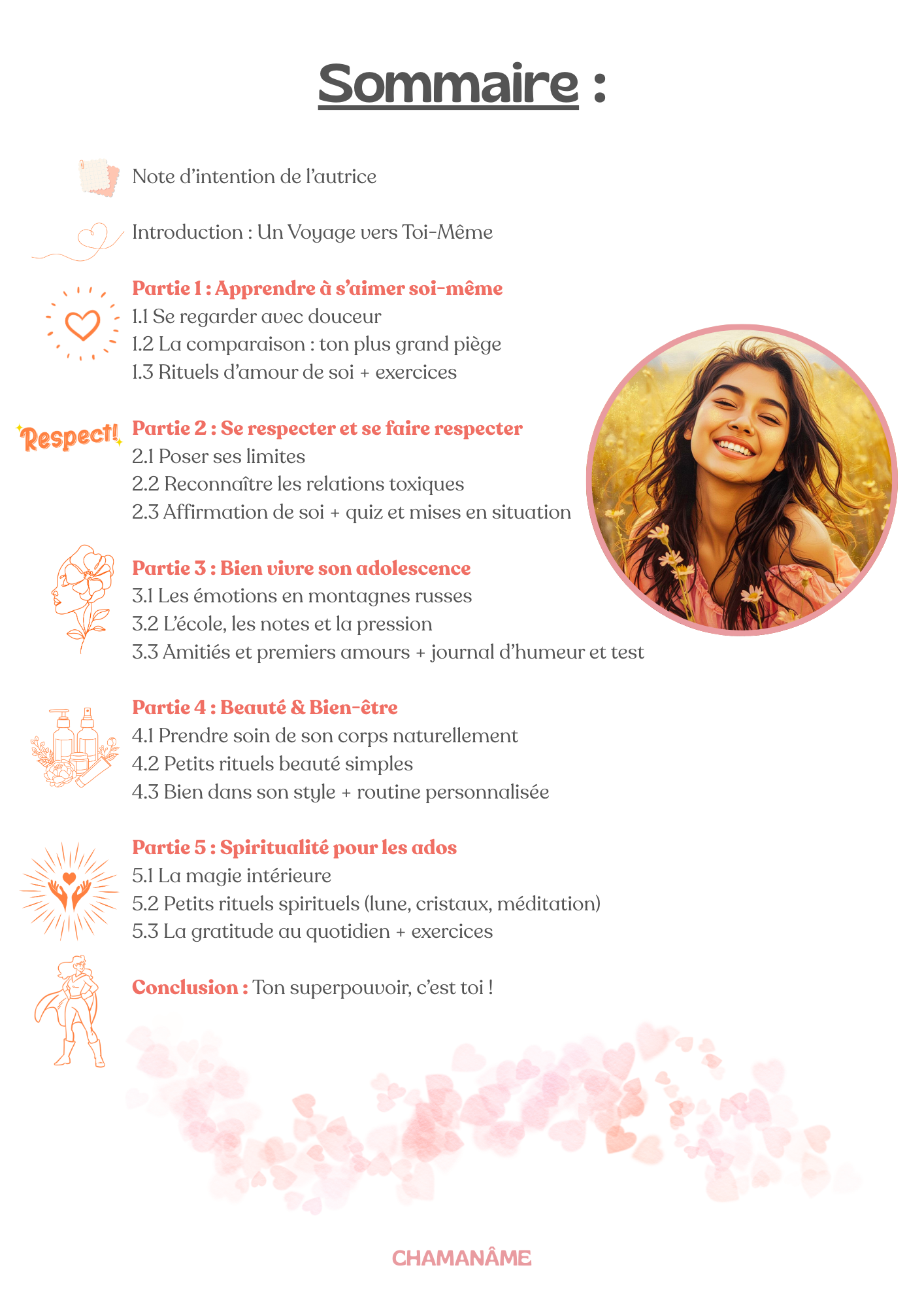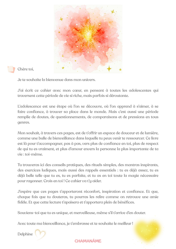 Un véritable compagnon de route, comme une bonne amie ou une grande soeur bienveillante, pour apprendre à te connaître, à t’aimer, à t’affirmer… et à rayonner pleinement ta belle énergie d’adolescente !